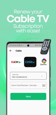 यह ऐप एयरटाइम और डेटा का तुरंत रिचार्ज करने की सुविधा देता है। साथ ही, यह रिचार्ज कार्ड प्रिंटिंग, केबल टीवी और बिजली बिलों का आसान भुगतान भी प्रदान करता है। आपके सभी भुगतानों के लिए एक ही जगह।