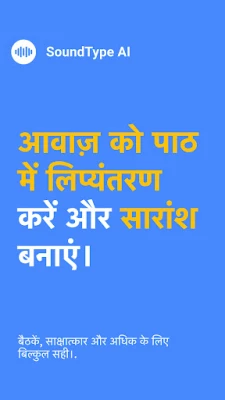 SoundType AI के साथ बोली गई बात को पाठ में बदलें। हमारा उन्नत ऐप आवाज़ और वीडियो फ़ाइलों को सटीक रूप से ट्रांसक्राइब करता है, जिसमें AI-संचालित संक्षेप और व्यक्तिगत स्पीकर पहचान शामिल है। 90 से अधिक भाषाओं का समर्थन करता है, यह मीटिंग, इंटरव्यू और पॉडकास्ट के लिए बिल्कुल सही है।