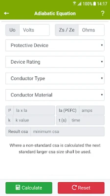 यह सहायक टूल आपकी कार्यप्रणाली को सुव्यवस्थित करता है, जिसमें रिंग फाइनल सर्किट के लिए R1+R1 और R2+R2 से R1+R2 कनवर्टर, पीएफसी कैलकुलेटर, सत्यापन परीक्षक के साथ केबल आकार कैलकुलेटर, वोल्ट ड्रॉप कैलकुलेटर, मुख्य अर्थिंग और बॉन्डिंग आकार, सर्किट सीपीसी आकार कैलकुलेटर, और एडियाबेटिक समीकरण जैसी विशिष्ट सुविधाएँ शामिल हैं। रिंग फाइनल सर्किट के लिए लाइव कंडक्टर अनुपात चेकर सीपीसी जैसी उन्नत कार्यक्षमताएँ इसे एक पूर्ण समाधान बनाती हैं। ध्यान दें कि सभी विस्तृत चार्टों को देखने और प्रिंट करने के लिए आपको मुफ्त स्मार्टडॉक्स (पीडीएफ दर्शक) की आवश्यकता होगी। यदि आपको यह एप्लिकेशन अपने दैनिक कार्यों के लिए उपयोगी लगता है, तो कृपया इसे रेट करके हमें बताएं।